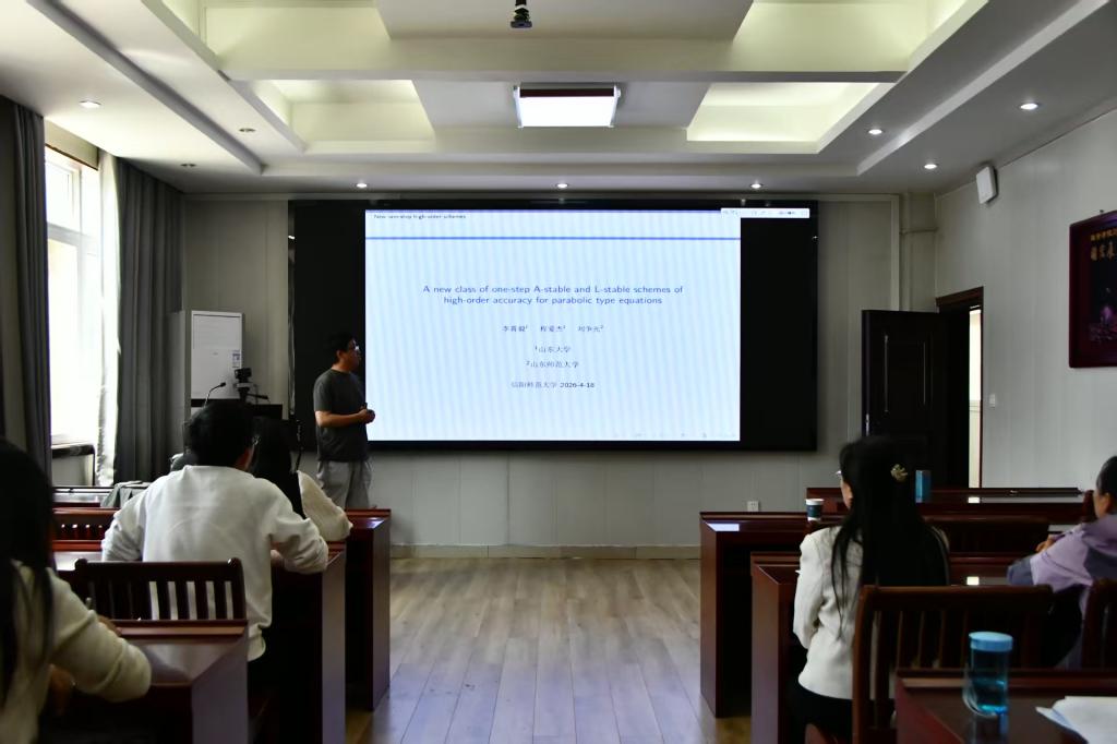 4月18日上午,应成人在线 邀请,山东师范大学刘争光教授莅临成人在线 ,作了题为《A new class of one-step A-stable and L-stable schemes of high-order accuracy for parabolic type equations》的学术报告。报告会由李世顺教授主持,学院部分教师及研究生到场聆听。