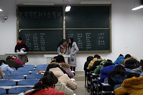 11月29日晚,成人在线 在数学楼103教室组织进行转专业学生考试,学院党委副书记洪亮亲临考试现场视察指导。