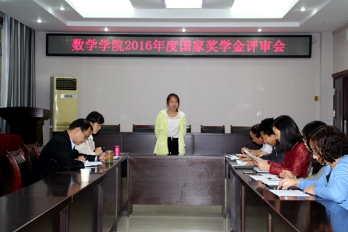 9月28日下午,数学学院2016年度国家奖学金评审会在数学楼315会议室召开。学院党委书记柳士刚,副书记何永,数学研究所副所长王娟以及相关辅导员、班主任参会,并担任评委老师,来自2013级、2014级和2015级的共计24名优秀学子参加了此次评选。