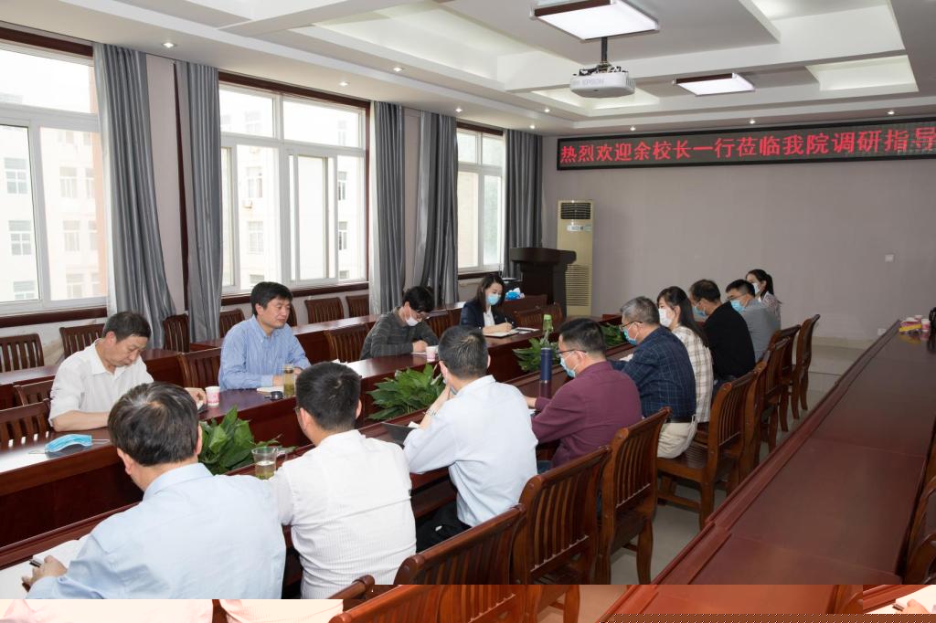 5月15日下午,副校长余本海教授与教学评估中心主任赵万鹏、教务处副处长范小伟等一行五人来成人在线 调研指导工作,调研会议在学院会议室举行,学院领导班子成员参加了会议。