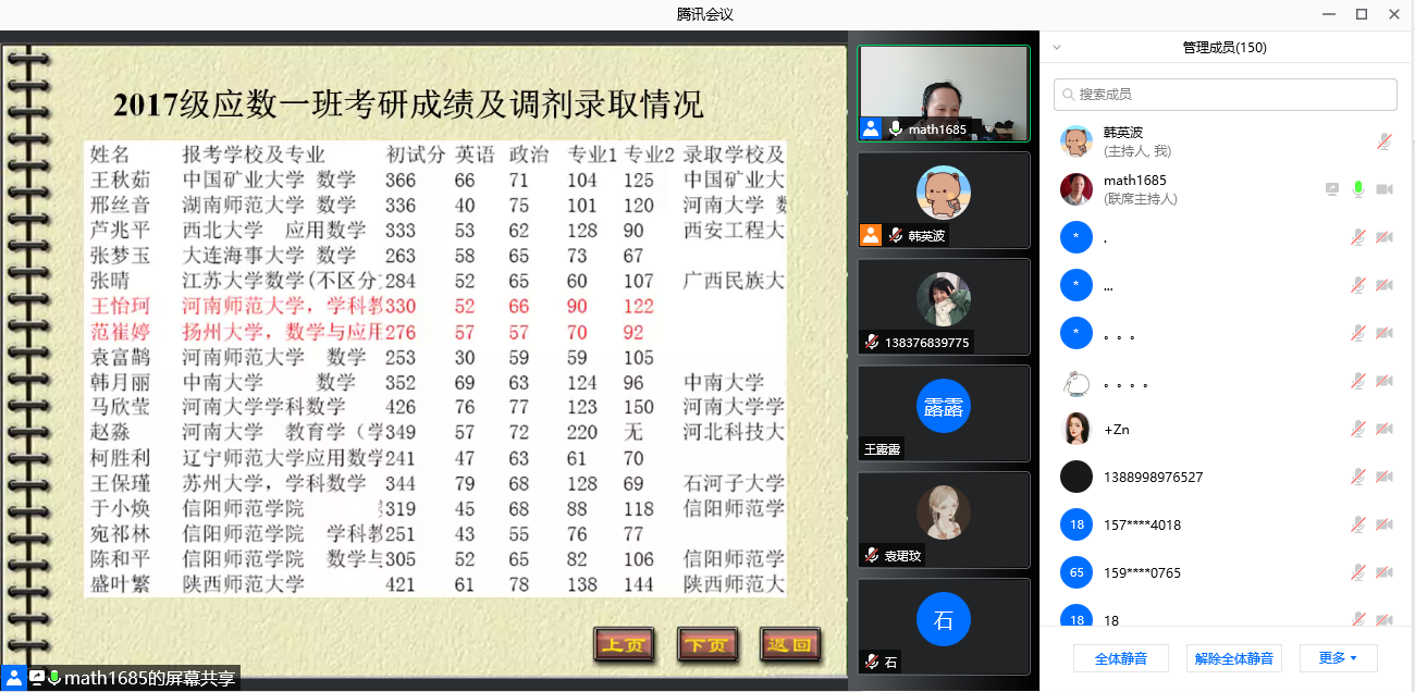 为了进一步提高成人在线 2018级学生的考研热情,增强学生报考重点大学信心,了解更多考研信息,2021年9月13日15:00-17:00学院邀请张盛祝老师通过腾讯会议为大四学生做一场题为“考研经验与准备策略分析”线上辅导交流会。本次交流会由副院长韩英波主持。