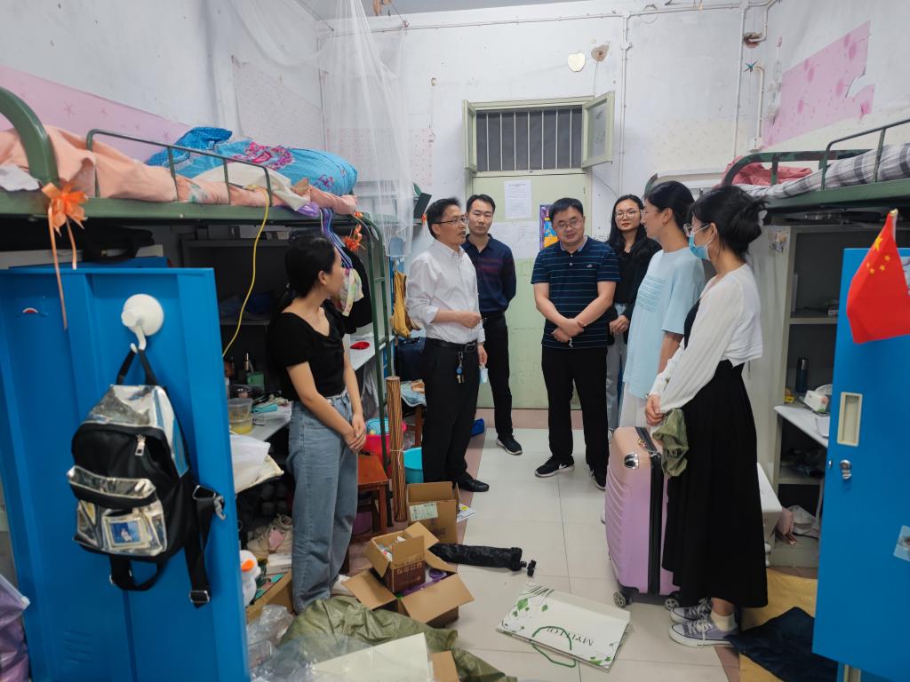 成人在线 领导老师走访毕业生生宿舍查看离校情况