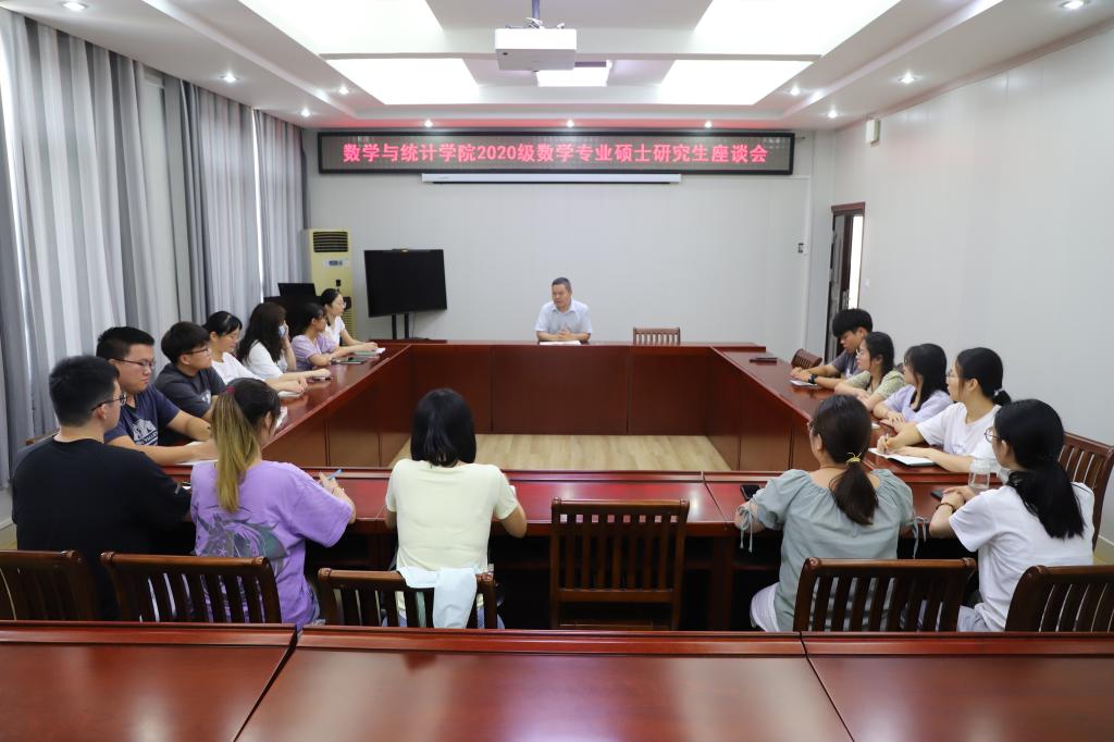 9月14日下午,成人在线 在数学楼315会议室召开2020级数学专业研究生座谈会。副院长韩英波,研究生班主任郑重和全体2020级数学专业在校研究生参加了会议。