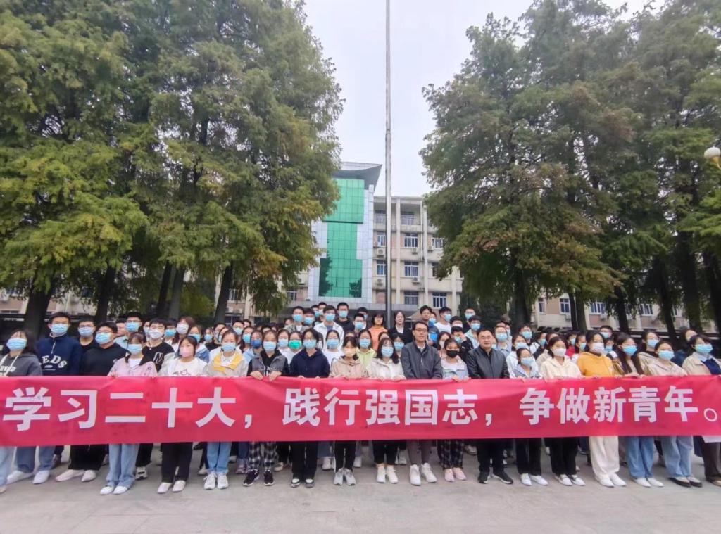 学院党委书记洪亮发表讲话,他鼓励青年学子要学习贯彻党的二十大精神,要与祖国同呼吸,与时代共命运,争当伟大理想的追梦人,争做伟大事业的生力军。要胸怀梦想、脚踏实地,坚持以习近平新时代中国特色社会主义思想为指导,踔厉奋发、勇毅前行、努力学习,争做有理想、敢担当、能吃苦、肯奋斗的新时代好青年。