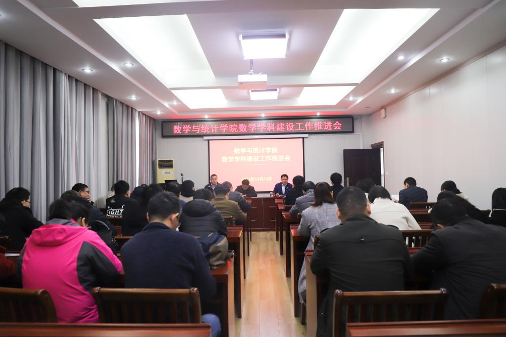 11月22日,成人在线 在数学楼315会议室召开校级优势学科-数学学科建设工作专题推进会。院长蔡礼明、党委书记洪亮、副院长韩英波及学院40余名青年博士教师参加会议,会议由副院长韩英波主持。