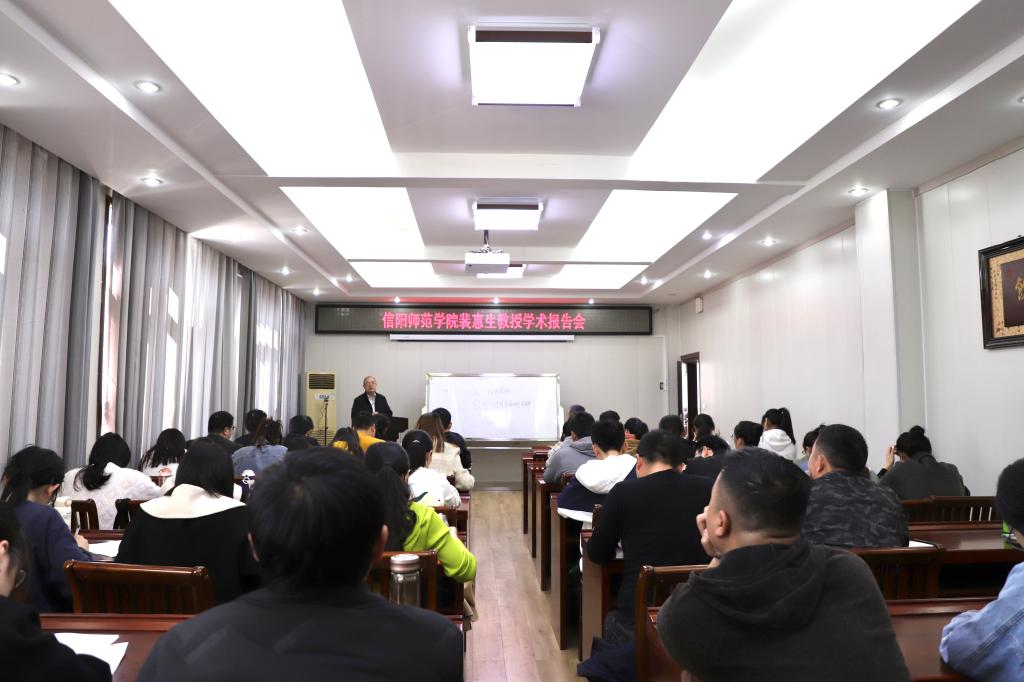 3月14日下午,应成人在线 邀请,信阳师范学院裴惠生教授,在学院报告厅作了题为“我的科研之路”的报告。报告会由成人在线 副院长韩英波教授主持,成人在线 青年教师、研究生和本科生聆听了这次报告。