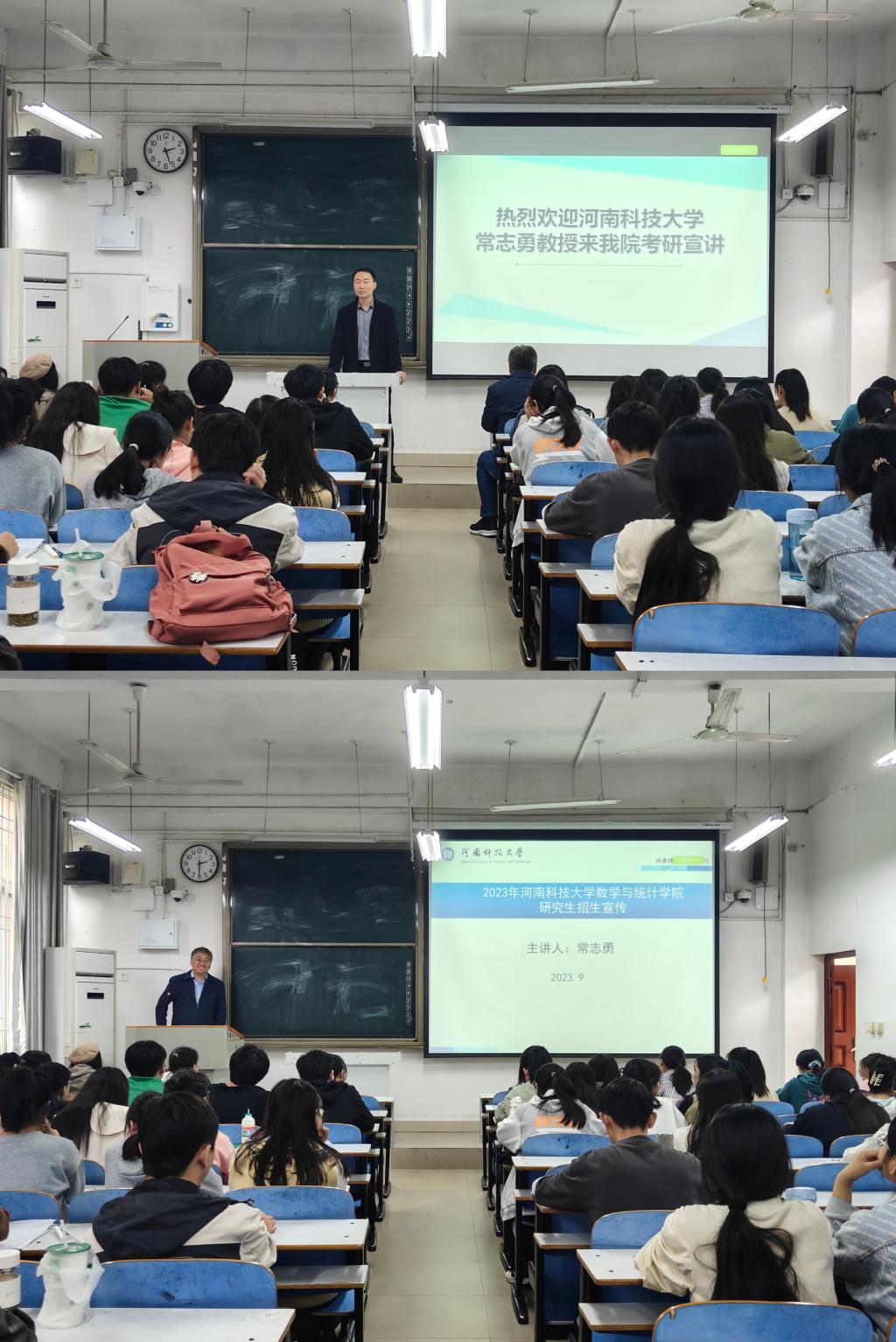 常志勇教授简要介绍了学校和学院基本情况、学院办学理念和办学定位,并就学位点设置、学科建设、科研成果、人才培养成效、导师团队、科研平台和学生们关注的研究生生活、奖助体系、招生政策等情况进行了详细讲解,充分展示了河南科技大学学科优势及专业特色。在宣讲会上,教授就学生们关心的考试科目、复试要求、录取比例、研究生培养等问题进行了一一解答。师生面对面地交流,考生们对学校和学院的研究生教育有了更深入的了解,对学院的研究生教育质量给予了高度评价。
