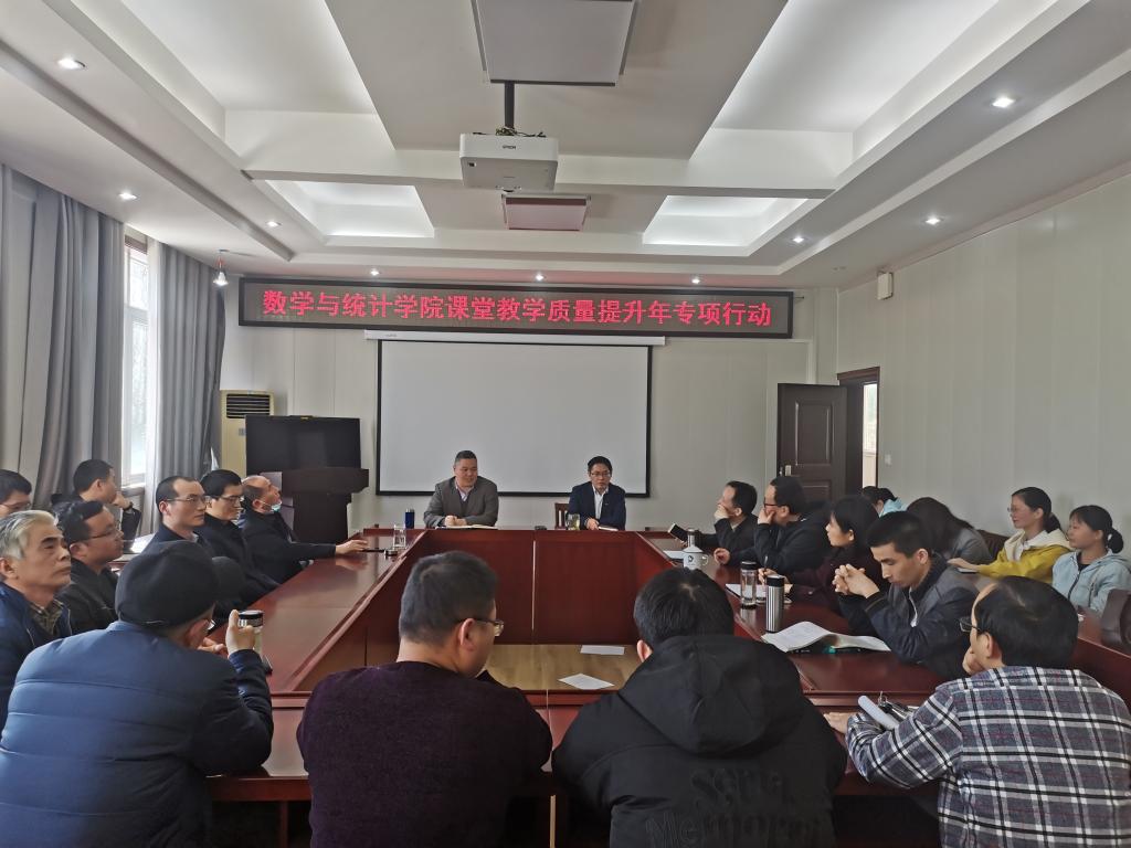 课堂教学质量提升年专项行动工作会议在数学楼315会议室召开。院长蔡礼明,副院长韩英波,督导专家,高等代数、数学分析、高等代数选讲、数学分析选讲等任课教师、班主任参加了会议。会议由副院长韩英波主持。
