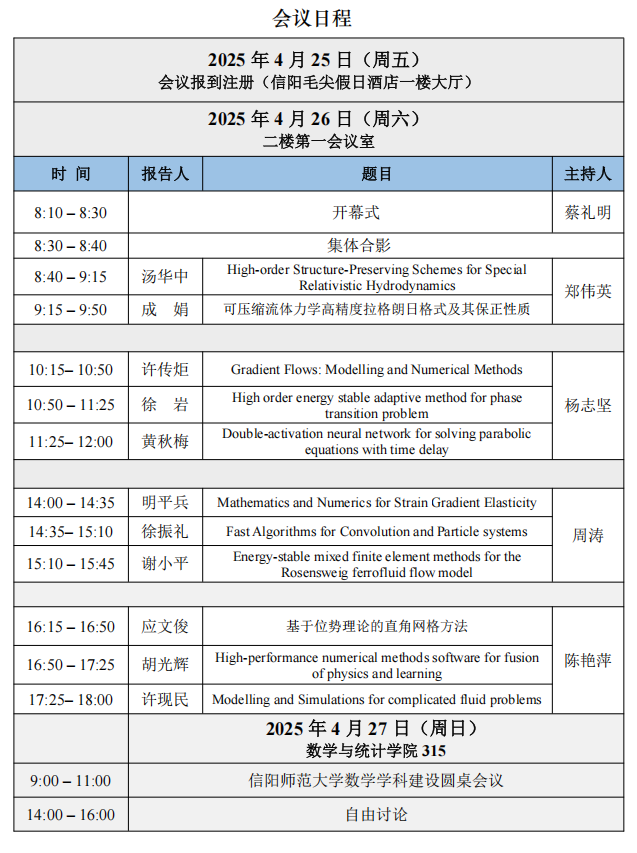为促进数学学科的发展,由成人在线 和中国科学院数学与系统科学研究院共同主办的 “2025计算数学前沿论坛”将于 2025 年 4 月 25 日-4 月 28 日在河南省信阳市举办,本次论坛旨在汇聚计算数学和科学工程计算领域的杰出专家学者,交流相关领域的最新研究成果,结合经典科学计算与先进计算、人工智能等热门主题,开展广泛深入的交流探讨,加强合作研究。