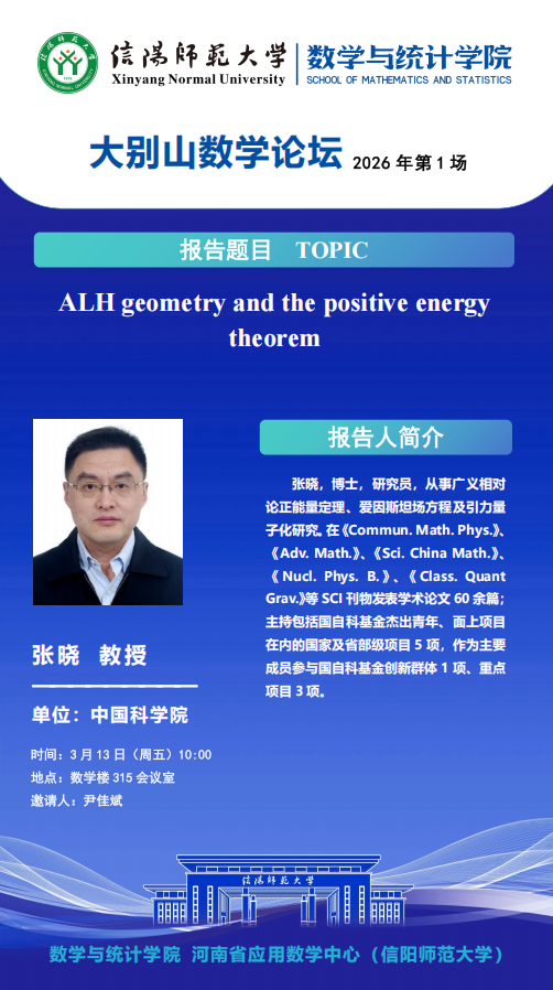 大别山数学论坛:中国科学院张晓研究员——ALH geometry and the positive energy theorem